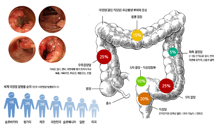 대장 겉표면에 암세포가 점점 커지면서, 직장 출혈과 같은 증상이 동반되어 혈변을 보게 될 수도 있으며, 배변 후, 지속되는 피가 묻어나오거나, 혈변을 발견한다면 내시경 검사를 받는 것이 좋아 보입니다.
