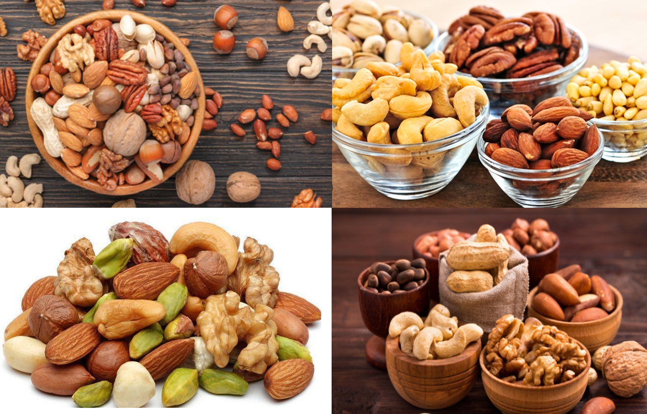 견과류에는 필수 지방산과 비타민, 무기질, 항산화제 등이 포함되어 있으며, 견과류에는 아몬드, 호두, 헤이즐넛, 땅콩 등의 다양한 종류가 있습니다. 이런 견과류는 섬유질도 풍부하게 함유되어 있어서, 식욕을 줄이고 과식을 막으며, 견과류에 함유된 지방은 하루동안 에너지 소비를 증가시킵니다. 견과류는 특히 심장 건강 개선의 요소가 많아서 고농축의 필수 지방산은 심혈관 건강에 매우 중요하며, 뇌 건강을 보호해주며, 소염작용과 소화 건강을 개선시켜 주며, 노화를 방지시켜 주며, 근육량도 증가시켜 주는 좋은 음식입니다.